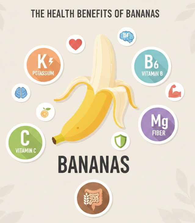 Bananas are one of the most popular and widely consumed fruits in the world. They are affordable, easy to find, convenient to eat, and loved by people of all ages. Beyond their sweet taste and soft texture, bananas are packed with essential nutrients that provide many health benefits. This fruit contains important vitamins, minerals, fiber, and natural sugars that support overall well-being. This essay discusses five major health benefits of bananas, highlighting why they should be included in a healthy daily diet.